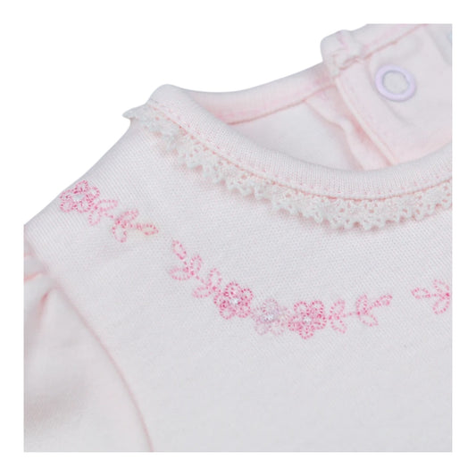 Emile et Rose - Light pink all in one with hat, floral embroidery detail
