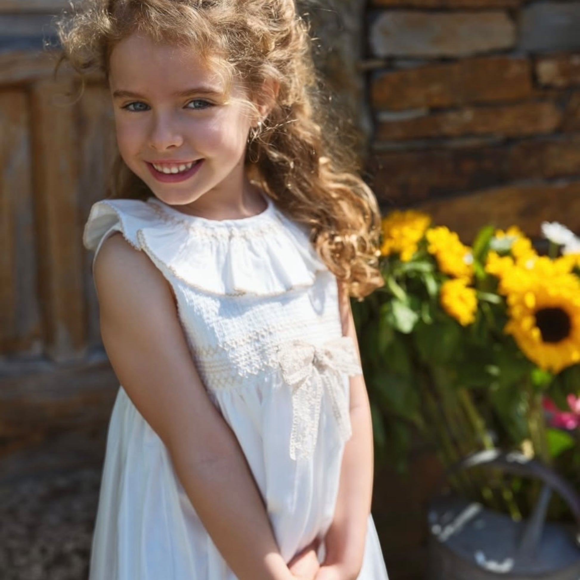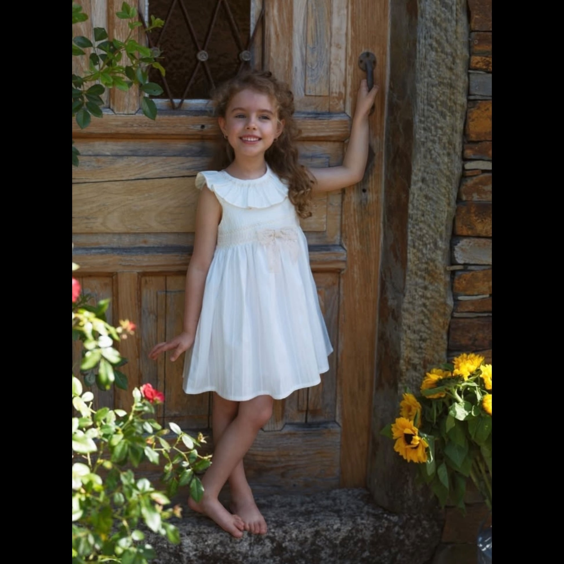 Deolinda - Ivory dress with smocking detail