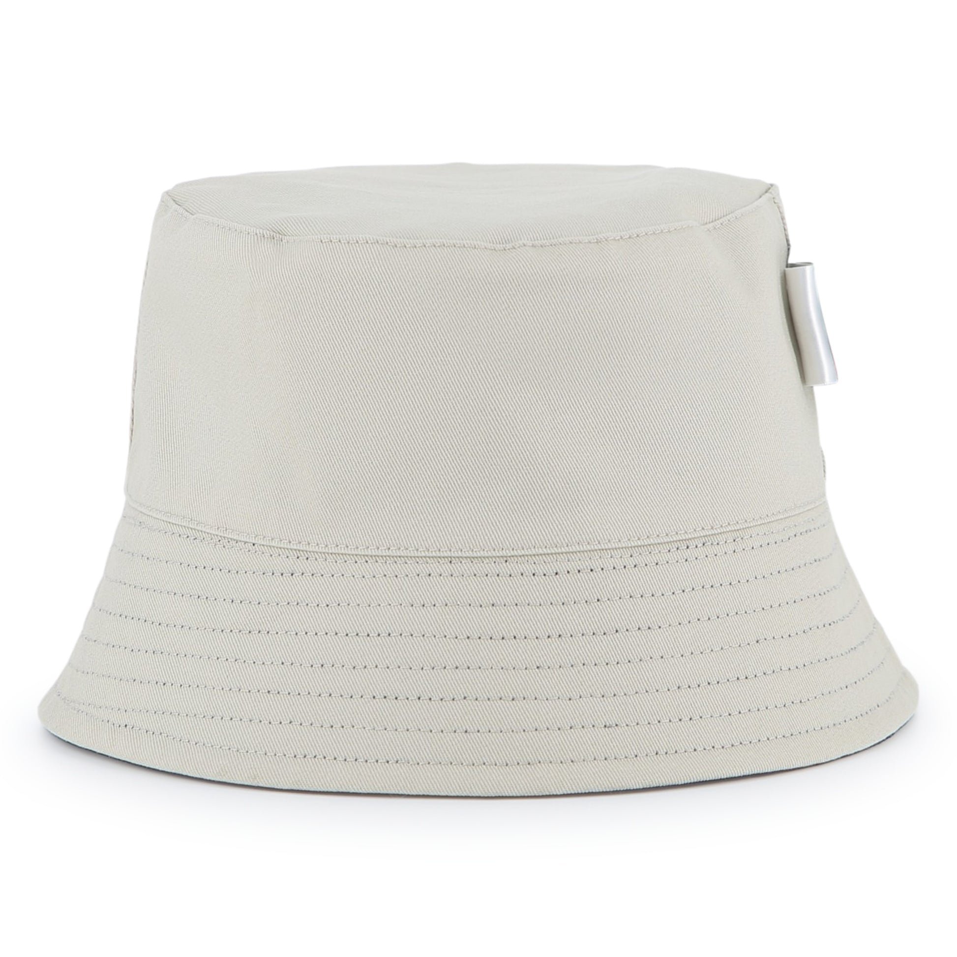 Reversible bucket hat, one side navy and reverse side stone/beige